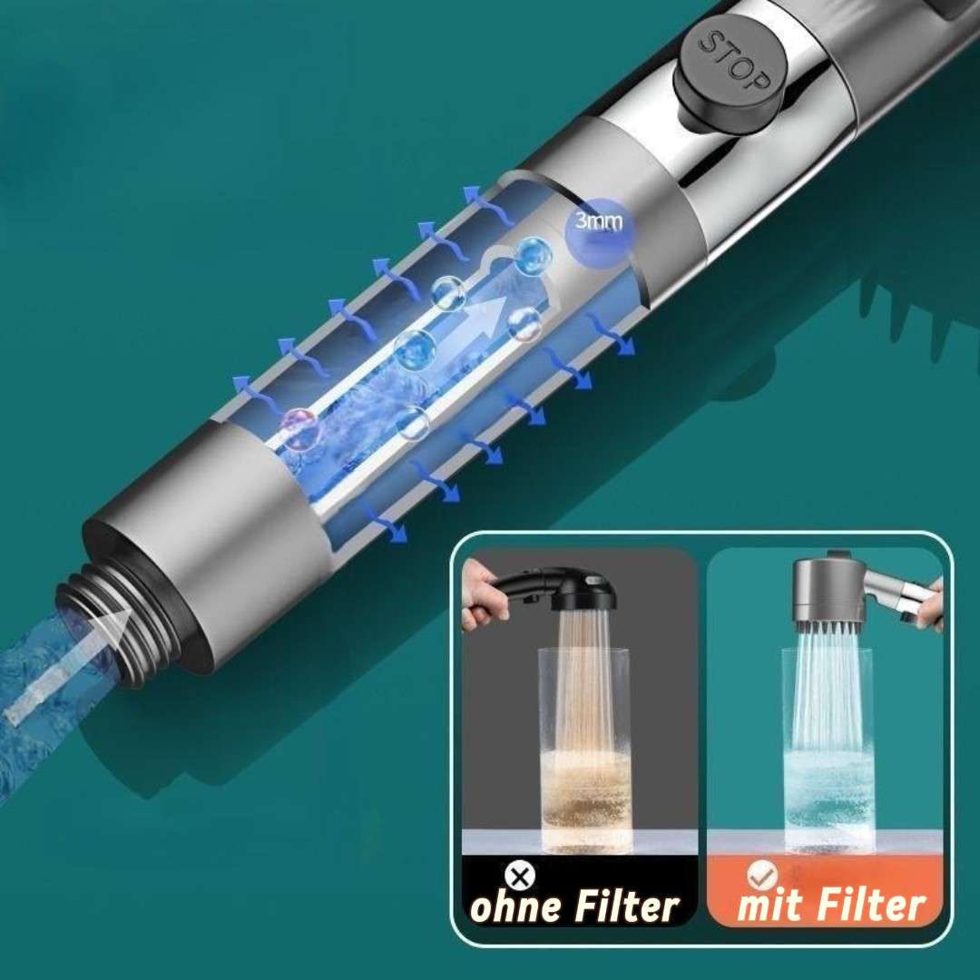 Entdecken Sie eine neue Dimension des Duschkomforts mit unserem modernen Duschkopf mit eingebautem Wasserfilter.