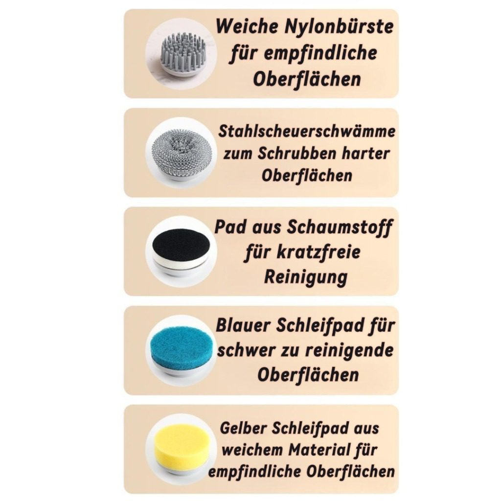 Wymienne końcówki do każdego rodzaju zabrudzeń.